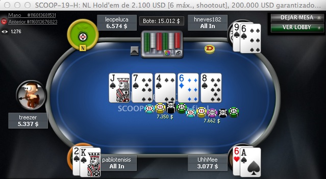 Teniendo en cuenta que de un tiempo a esta parte, Pablo se ha especializado en SNG 6-Max (si bien es cierto que su modalidad son los Hyper-Turbo), el SCOOP-19 en formato 6-Max, Shootout se ajustaba como anillo al dedo a sus características.
